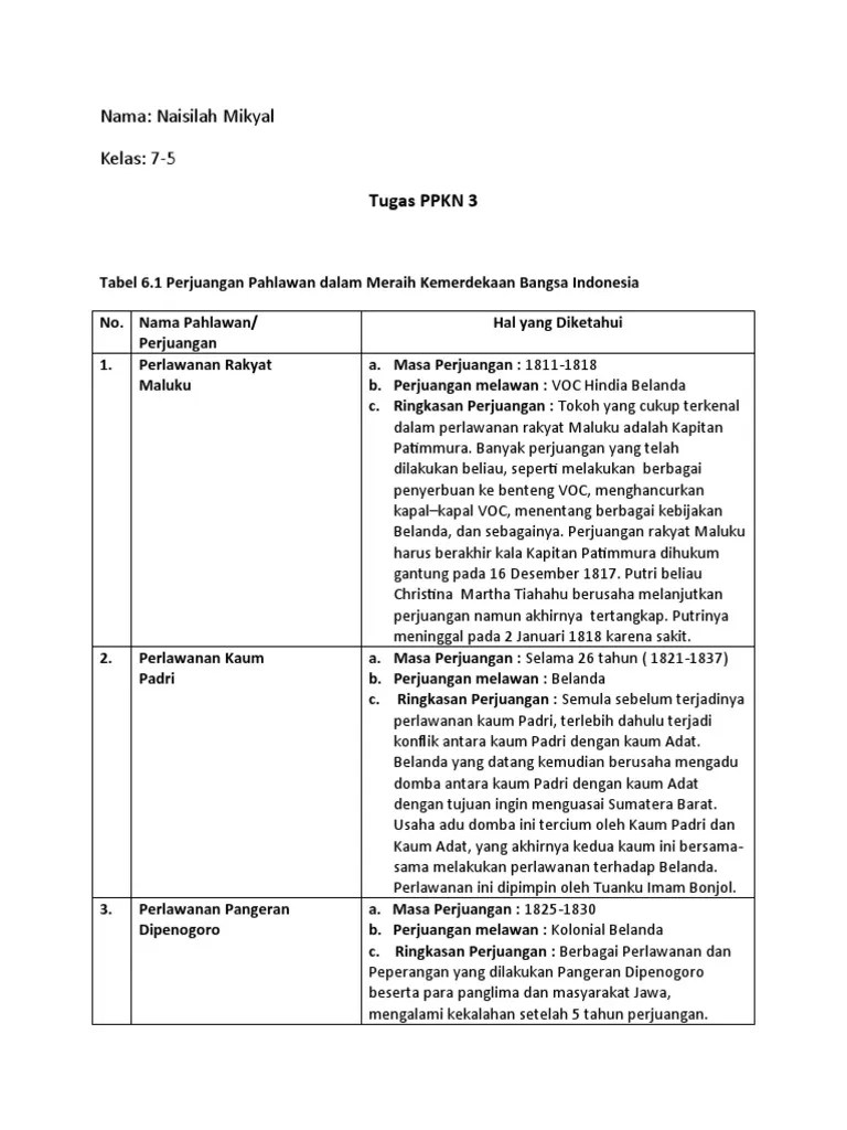 Karena kaum padri dan kaum adat bergabung jadi satu berjuang . Perang ini terjadi antara kaum adat dengan kaum padri. Perjuangan pahlawan dalam meraih kemerdekaan bangsa indonesia. Masa muda, perjuangan, dan akhir hidup . Rakyat kalimantan pernah melakukan perlawanan kepada para penjajah.
